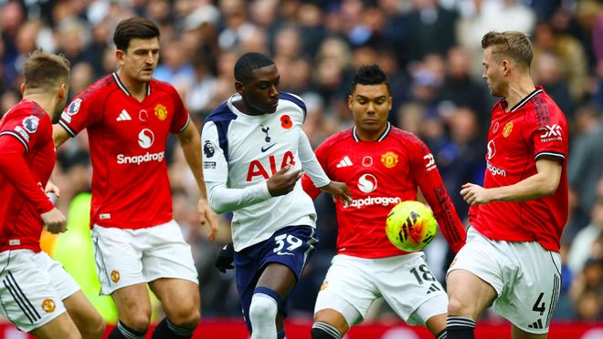 北京时间11月8日晚,英超第11轮首场比赛,是一场万众瞩目的战斗。总资产9.2亿欧元的托特纳姆热刺坐镇主场迎战总资产7.3亿欧元的曼联。周中的欧冠比赛中,热刺主场4-0击败哥本哈根。这是球队近六场比赛中的第二场胜利。上一场联赛输给切尔西后,人们怀疑热刺内部矛盾爆发。范德文和斯彭斯等球员无视弗兰克教练,拒绝与他握手。然而,在前10场比赛之后,托特纳姆热刺仍有可能排名第六。热刺身后的是曼联,积分相同。阿莫里姆和姆贝莫因十月份联赛三连胜而分别被评为英超本月最佳教练和球员。联赛最后一天,曼联战平诺丁汉森林,输掉一场比赛。晋升第二名的好机会。比赛前15分钟,两队比赛节奏缓慢、有节奏。两队似乎都决心迈出第一步。第16分钟,约翰逊横传。理查利森有一个很好的机会,但未能转化,这令人失望。 20分钟后,曼联突然改变战术,高位逼抢十分激进。第21分钟,曼联获得角球。理查利森踢球,不小心把球踢到了自己手里。第31分钟,范德文解围时出现失误,曼联开始进攻。阿马德·迪亚洛抬腿传球,姆贝莫点球点头球攻门,但维卡未能扑出。上半场结束,曼联1-0领先。两队只有一次射门机会,各有3次。从下半场开始,热刺的进攻就变得非常犀利。第53分钟,罗梅罗射门破门。斯彭斯 45 度传球时用脚后跟踢球。拉梅斯竟然救出了球。两分钟后,热刺发起反击。帕里尼亚的凌空抽射将卡塞米罗的头球顶出。莱芒斯挡住了视线。尽管受到了打击,他还是把球救了出来。第62分钟,热刺再次进攻,约翰逊轻松进球。然而,马奎尔显然提前了,被判越位,导致进球被判无效。在承受了热刺的狂轰滥炸后,阿马德·迪亚洛在第69分钟送出精准长传,B.费的扑救堪称世界级。然而帕林亚很快就赶到了,B.费急忙用高射炮开火。一分钟后,马奎尔捂着大腿后部肌肉倒地,无法坚持被约罗换下。第84分钟,热刺两名主力替补连线,乌多吉边路传中,西娅抱住德里赫特,转身射门,皮球入网。第91分钟热刺获得角球,奥德贝尔远射,理查利森快速头球加速,但拉门斯未能扑出,热刺取得领先。进球后,理查利森捂脸流泪,甚至脱掉衣服变黄庆祝,但这并不是最终结果,激动人心的事件还在继续。第96分钟,B.费开出角球,德里赫特头球彻底扳平比分。比赛继续进行,但很快就结束了。最终,在这场总价值16.5亿的英超豪门之间的比赛中,总收入9.2亿的热刺在卡萨2-2战平总收入7.3亿的曼联。两队分别上升至第三名和第四名。