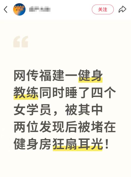 最近,在Xiamen展示了一个很大的机会,并通过互联网分发了当地体育馆发生的事情的视频。视频内容表明,男性体育教练被公开作弊,并同时与四个学生保持浪漫关系。真相揭示后,两个女孩直接找到了教练所在的健身房,并在所有人面前给他“学习”。在暴露的场景中可以看到互联网用户的启示,这是两个年轻的女教练当场讨论的。其中一名妇女首先将牛奶茶倒在男子上,然后拍了拍男教练。另一个女人也看到了这一点并加入了。这位男教练知道他在整个过程中都很有罪,被殴打和老,没有任何反对意见。在相机中,不难看到所涉及的男教练真的很漂亮,而且还没有阳光晴朗。来门上的两个女孩没有露出脸,但我们可以看到那里也是两个美丽的美女。涉及的男教练既高又优雅,阳光明媚,引起了如此丑闻。其他体育馆工作人员当场站着和吃瓜。没有人停止或调整。我认为存在类似的情感争议,观众在不知道概述的情况下无法果断地干预。冲突后有一个消息来源。男教练亲自诱使学生制定营养计划和为学生教私人课程的学生。四个学生最终不知道这一点。专家透露这一消息后,这位男教练发布了聊天专辑和亲密视频。他的个性无疑是非常卑鄙的。得知他被欺骗了之后,当两个Victorstimas决定来门“攻击”时,出现了一个视频场景。该视频很快引起了互联网上的激烈辩论。许多互联网用户称赞了两个女孩的方法。毕竟,一只无耻的山羊像妈妈参与的LE教练应该遭受很多痛苦。该事件引起了这样的热门问题。男性教练工作很难进行,并且将来会面临很大的障碍。记者被称为商店,总是没有得到答复。官方的客户服务人员说,他们不知道问题,并且必须告知验证它。近年来,媒体报道的屏幕截图,丑闻和混乱发生在健身界。毕竟,在健身领域,教练和亲戚学生之间的身体接触至关重要,可以轻松着火。由于其强大的社会属性,许多教练使用此渠道开始捕鱼自助餐。在大多数情况下,许多受害者来自富裕的家庭,一些教练有明确的目的来积极地接近和复杂自己。我希望这个行业能够有效纠正。毕竟,健身行业对其存在和发展具有其价值和重要性。保持短春不良习惯,不要继续渗透它们。