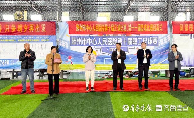 11月2日,滕州市市中心人民医院第十一届职工篮球赛、第十届职工足球赛闭幕式在山城足球场举行。学院党委委员、纪委书记李庆峰,党委委员、纪检监察局局长李文出席活动。闭幕式由研究院工会主席胡桂云主持。篮协主席黄俊代表篮协和足协宣布了比赛结果。篮球比赛中,外科队获得第一名,管理队获得第二名,内科队获得第三名。足球比赛中,外科队获得第一名,后勤管理队获得第二名,U型急诊超声设备获得第二名。此次活动还特别推出了多项个人奖项旨在表彰在比赛中表现出色的球员和教练,包括MVP、年度最佳新秀、年度最佳教练、金靴和金手套。在热烈的掌声中,医院院长等为获奖个人和单位颁奖并表示祝贺。随后,“腾翼足协杯”足球友谊赛正式开幕,本次职工运动会圆满结束。举办本次职工篮球、足球比赛,不仅丰富了职工球迷文化生活,增强了团队团结,也充分展现了医院职工积极拼搏的精神风貌,为医院文化建设注入了新的活力。 (流星通讯员)特别提示:以上内容(包括图片、视频,如有)由自有媒体平台“网易账号”用户上传发布。这个平台m仅提供信息存储服务。